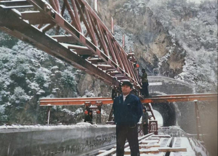 秦巴山高路险,大型铺轨机无法抵达。工人们只能在狭窄隧道内启灯网,肩扛手抬25米长的沉重轨排,脚下是易塌的道砟,步履维艰。在女儿的记忆中,手拿铅笔,对着图纸伏案的父亲经常感叹:“山肚子里铺铁轨,比绣花还难!”